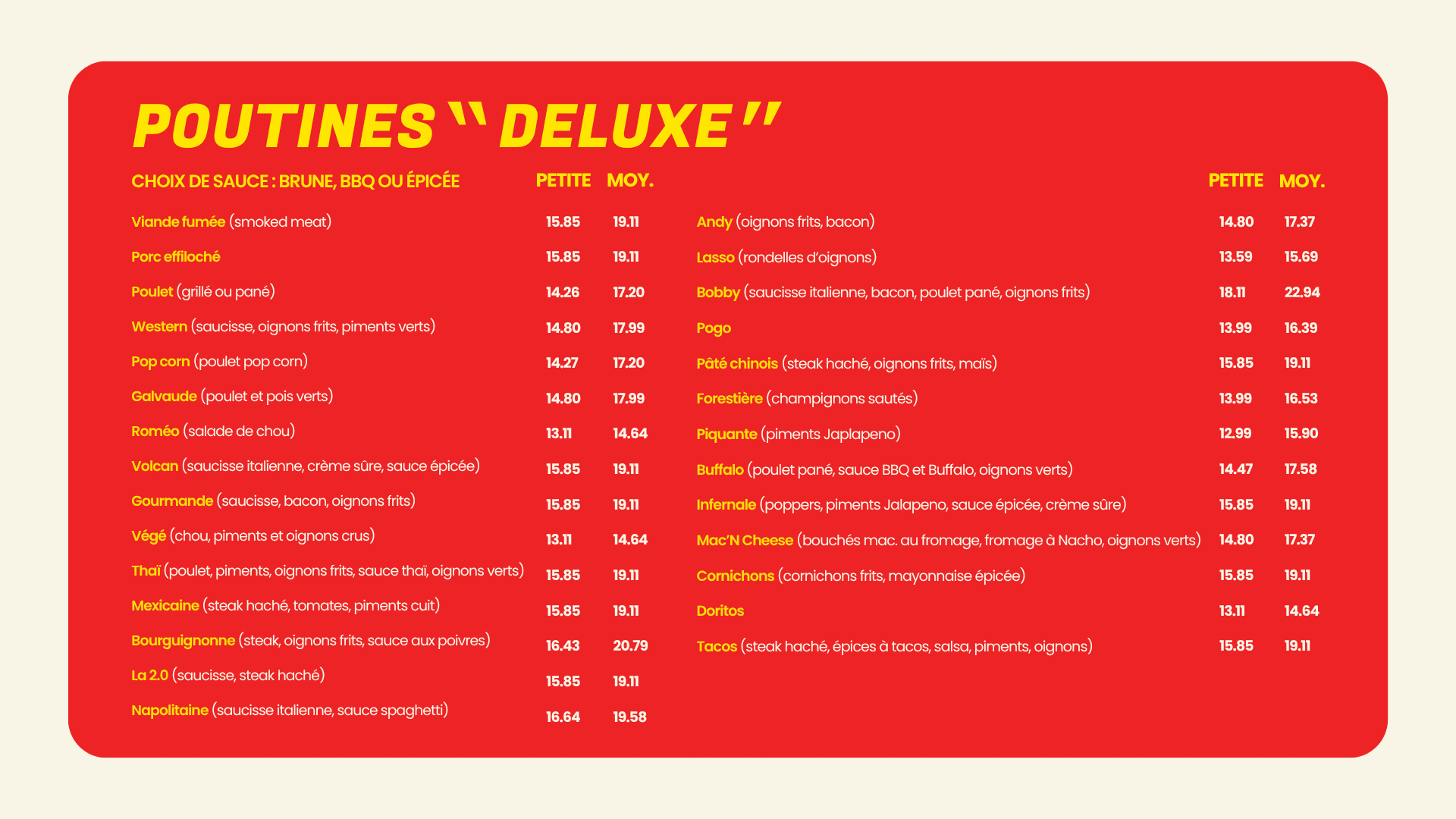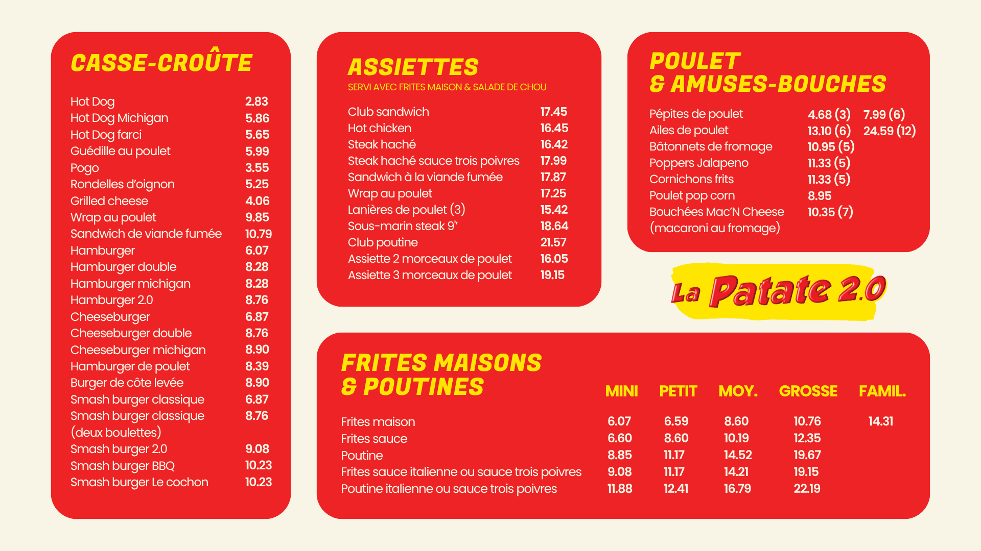 Envie d’une bonne poutine ou de nos fameuses frites maison ? Passez votre commande en ligne en quelques clics et récupérez-la rapidement, ou faites-vous livrer directement chez vous.